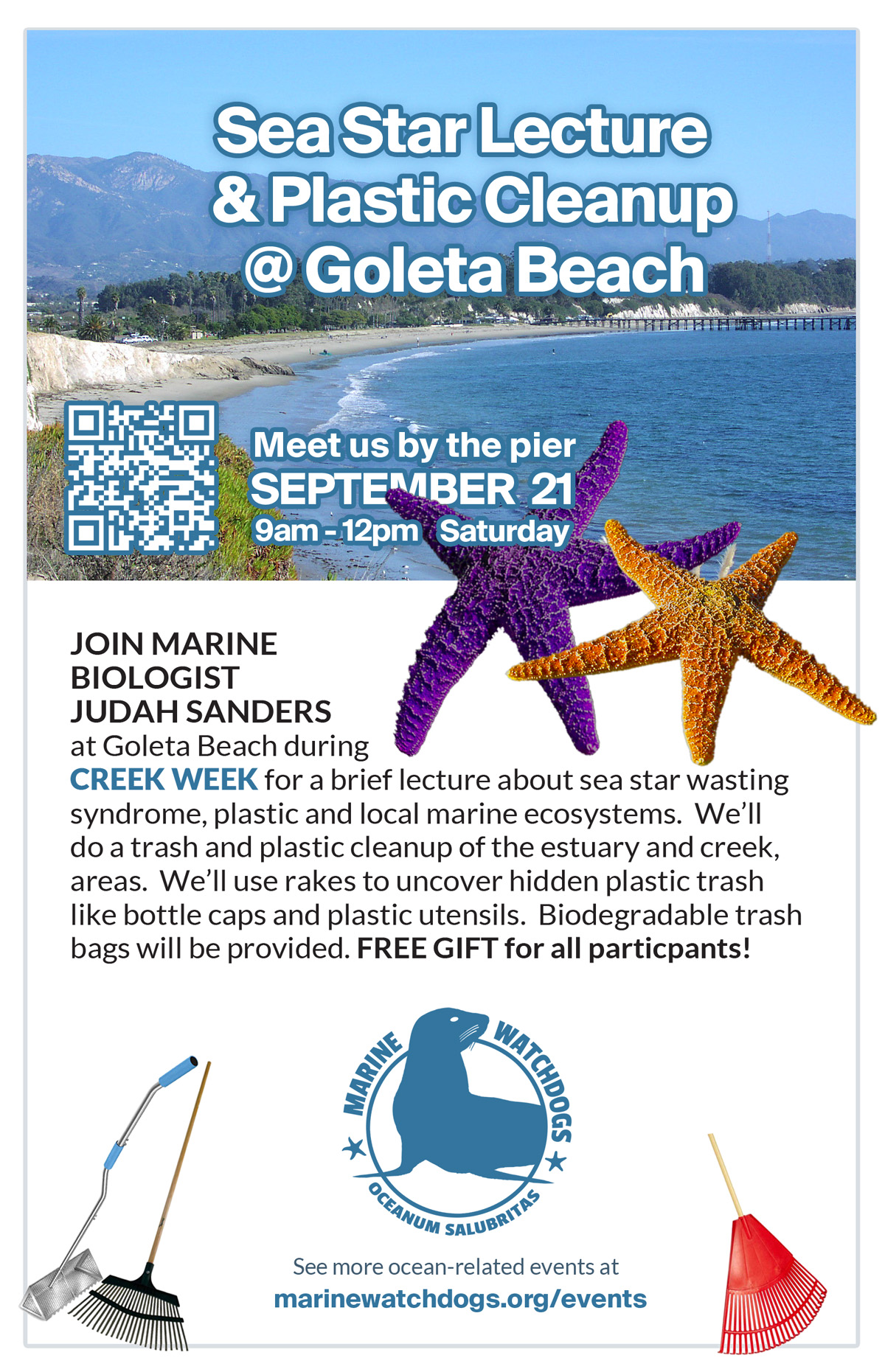 Join a brief lecture about sea star wasting syndrome and a cleanup of the Goleta Beach estuary/slough and creek areas. Space is NOT limited! View Flier.