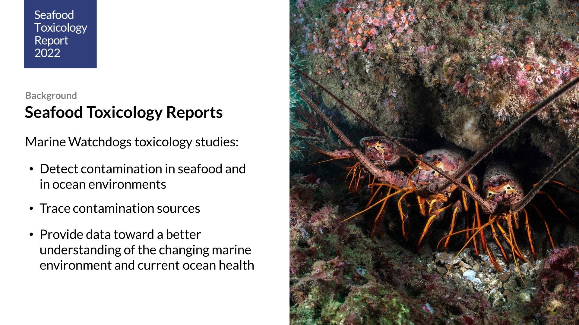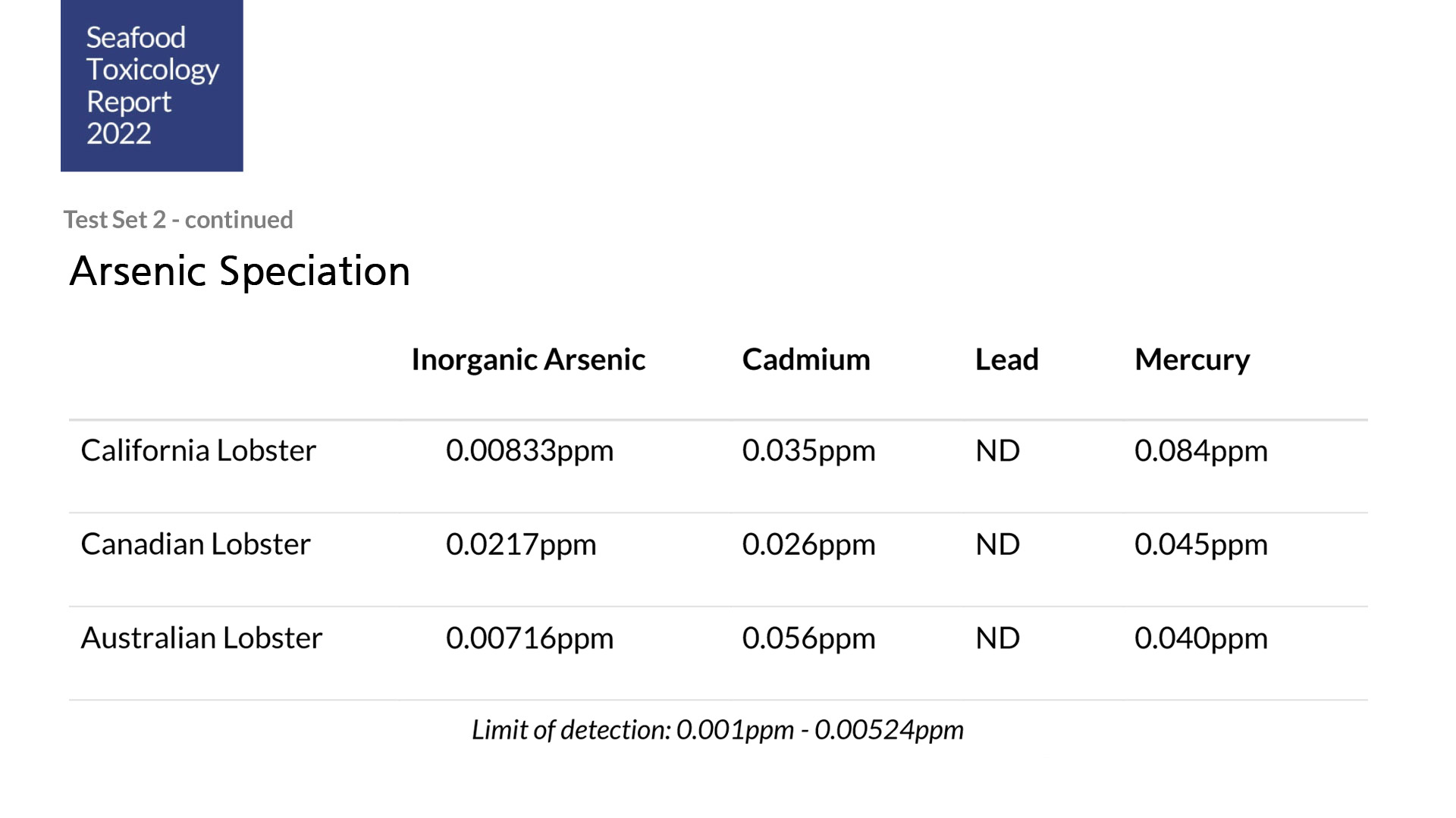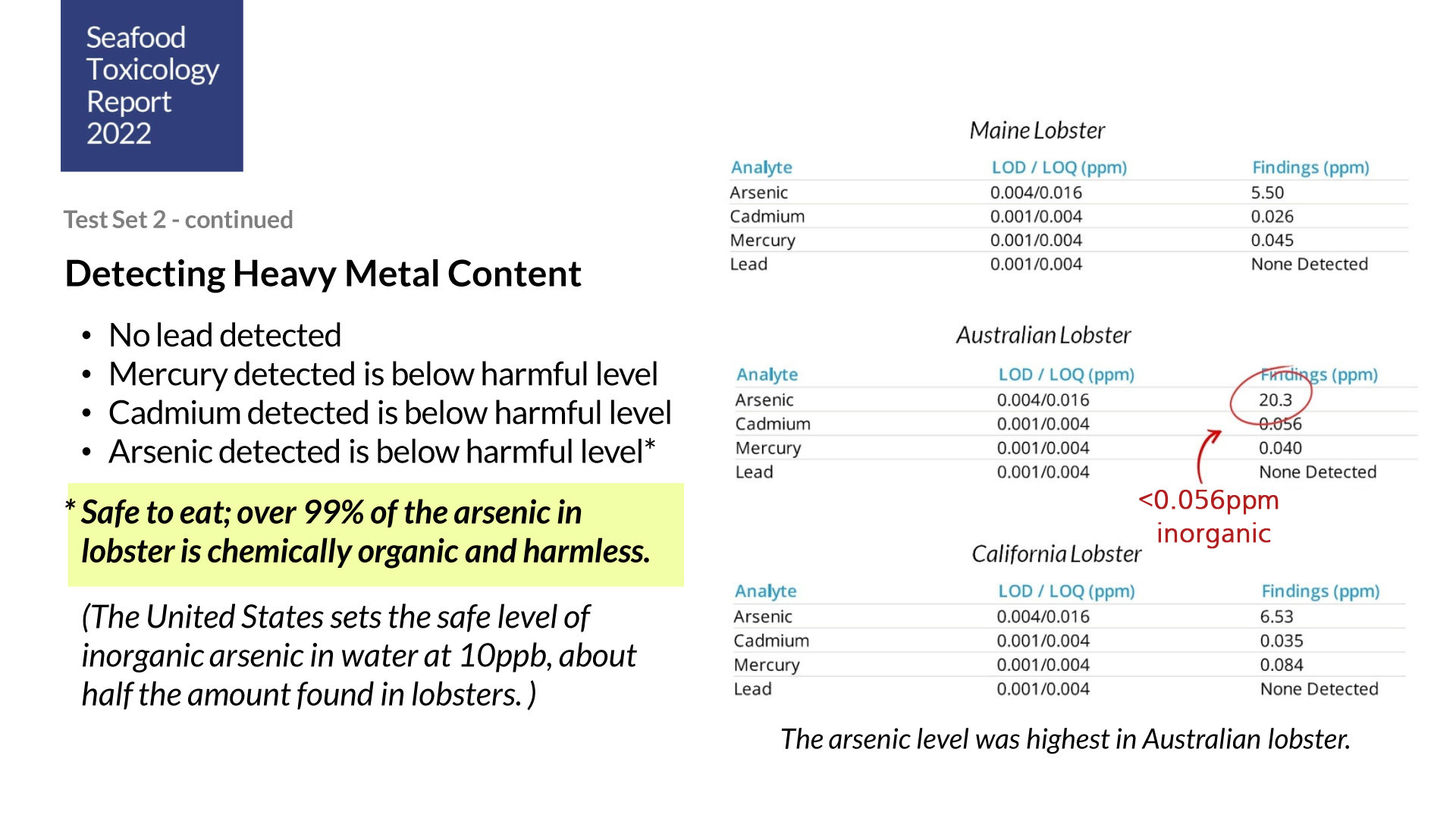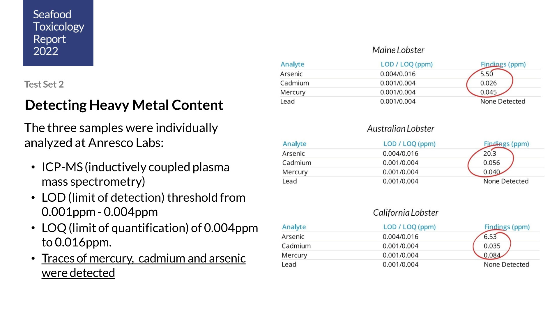 This toxicology study compares the chemical compositions of lobsters from California, Canada and Australia.